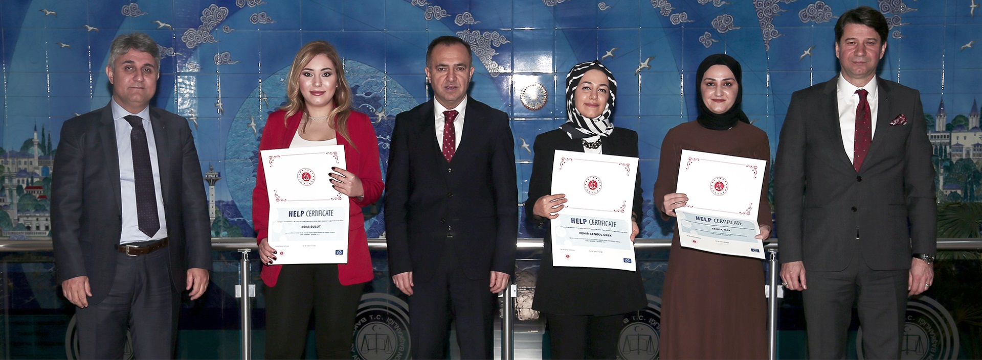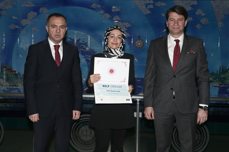 Bakırköy Adli Destek ve Mağdur Hizmetleri Müdürlüğünde görevli uzman personelimizin, Avrupa Konseyi Hukuk Profesyonelleri İçin İnsan Hakları Eğitim Programı (HELP) eğitimi kapsamında “Kadına Yönelik Şiddet ve Ev İçi Şiddet” eğitimini başarıyla tamamlamaları vesilesiyle sertifikaları Bakırköy Adalet Komisyonu Başkanı Sayın Atila ÖZTÜRK, Bakırköy Cumhuriyet Başsavcısı Sayın Hüseyin GÜMÜŞ ve Bakırköy Adalet Komisyonu Üyesi Sayın Cem KARACA tarafından takdim edilmiştir.